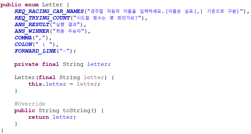 이게 2주차에 설정했던 enum 클래스인데 전까지는 enum 잘만 써놓고 왜 3주차와서는 거꾸로 했을까...........